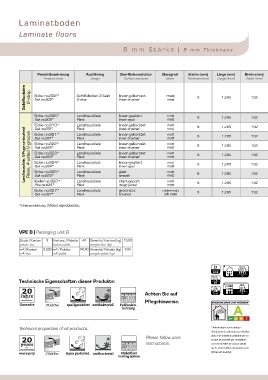Produktbezeichnung Ausführung Oberflächenstruktur Glanzgrad Stärke (mm) Länge (mm) Breite (mm) Fuge Verbindung OF-Nr. Artikelnummer VPE Leiste SKL 20 Leiste SKL 60